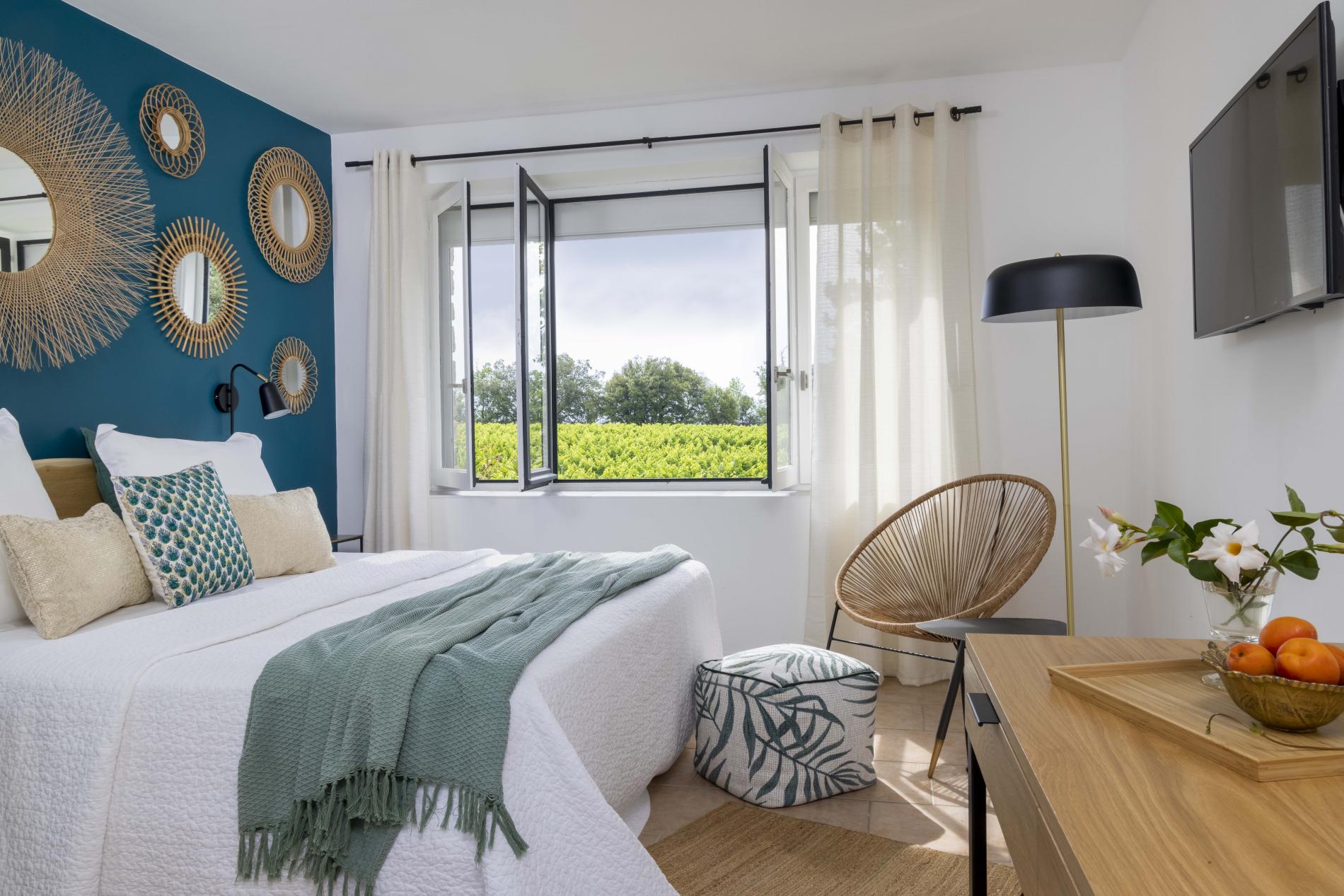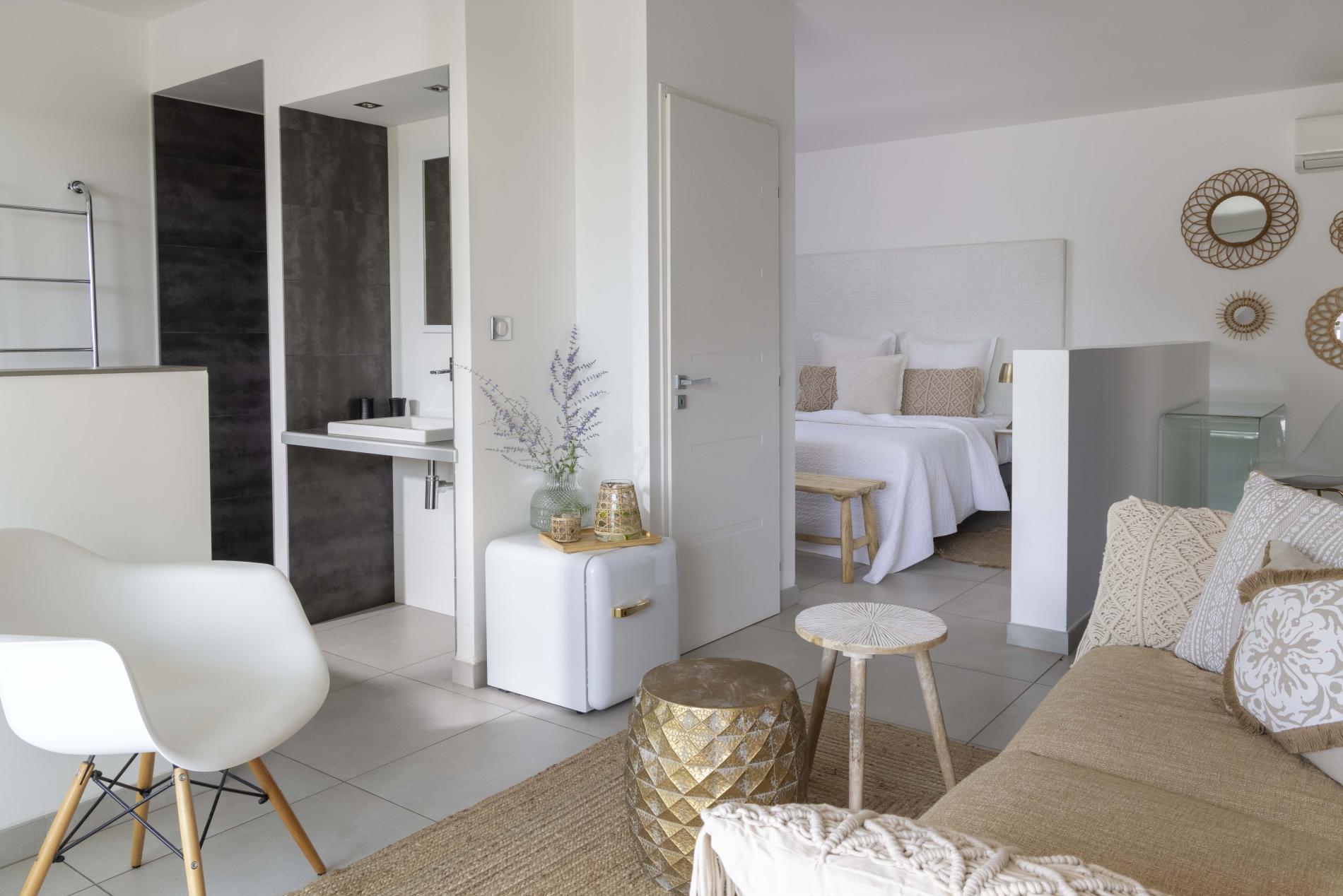 In the modern part of the Mas du Terme, the "M" houses 10 "prestige", chic and contemporary rooms. Sometimes "sapphire", "diamond", "ruby", "amber" ... They are all as precious as they are rare, like the stones whose names they proudly display. Your nights are sweet, nestling in your king-size bed and your wake-up, sunny, with a view of the magnificent panorama offered by the Cévennes and the olive groves from your window or your terrace with private jacuzzi in some rooms. A concentration of luxury just for you!